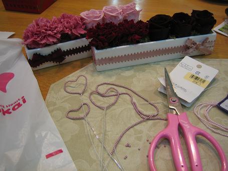パールで、ハートのワイヤーのピックを作って、差し込んで完成に