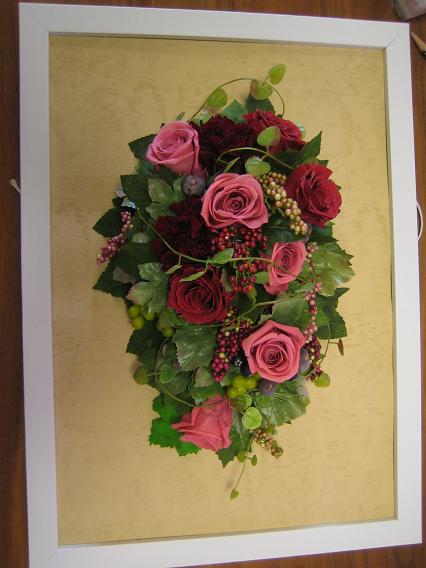 ハートのバラの作品の花器があまりにも、小さかったので急遽、前に作ったものを、出すことになったのはいいけれど・・・・