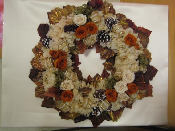 もう、1点は過去に作った、アイボリー系のリースの3点を出品する。